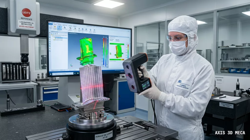 - Après : 20 minutes. Le scan est automatiquement aligné sur la CAO, les cotes critiques sont extraites, et le certificat de conformité est validé avant même que la pièce ne refroidisse.